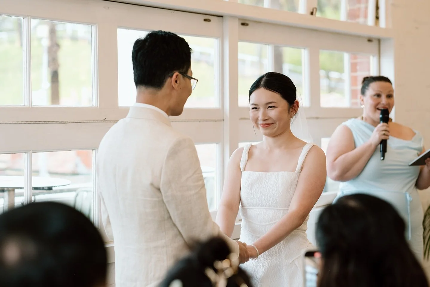 She managed to capture everything about us and make a ceremony and reception that we thought was perfect in every way. She had heartfelt moments with a dash of humour exactly when we wanted it, managed to wrangle a VERY big crowd and took all the pressure off us!